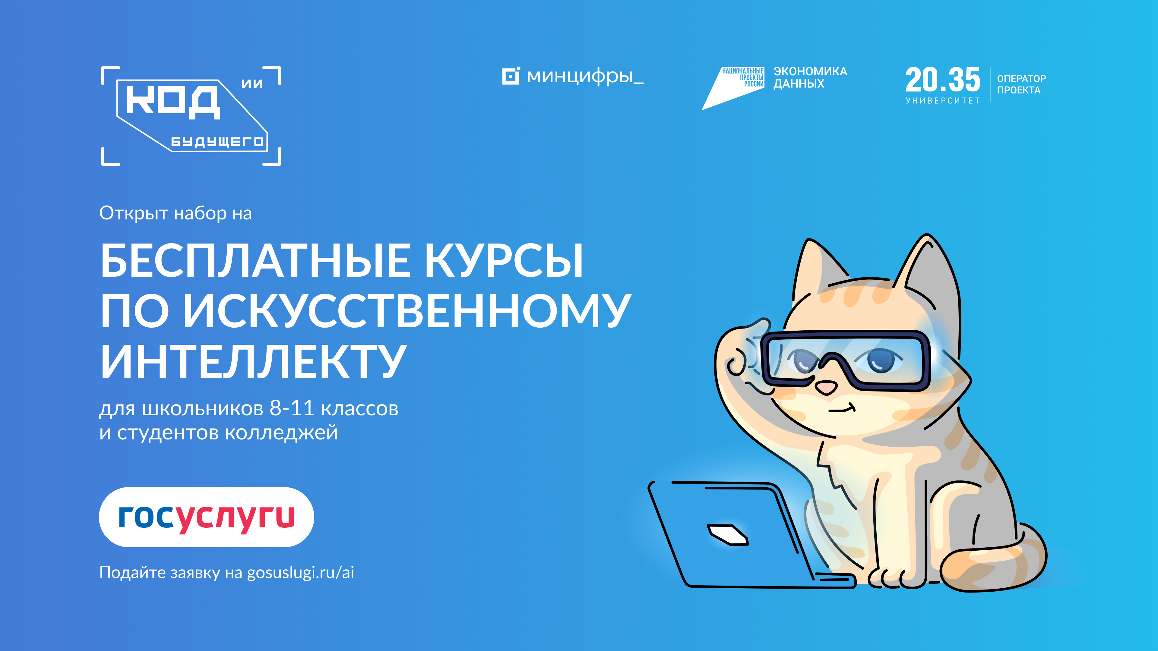 Минцифры России в рамках федерального проекта «Кадры для цифровой трансформации» национального проекта «Экономика данных и цифровая трансформация государства» с 2025 года реализует проект «Код будущего. Искусственный интеллект», направленный на обучение технологиям искусственного интеллекта школьников 8 – 11 классов и обучающихся по программам среднего профессионального образования.