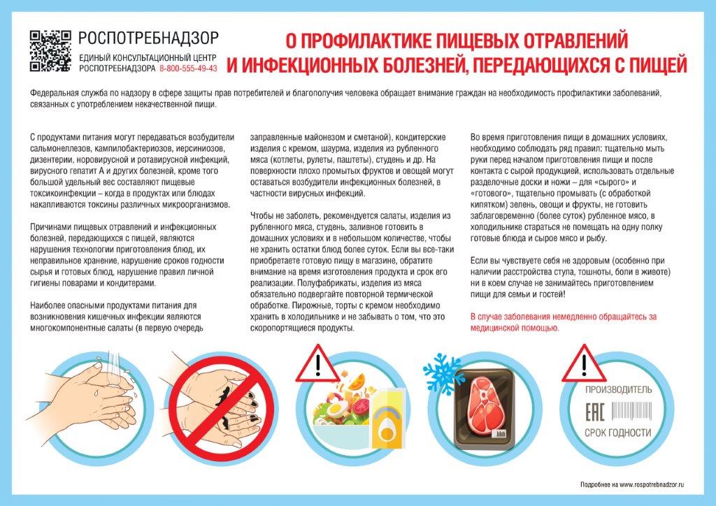 3. Продукты животноводства, особенно птицеводства, необходимо подвергать термической обработке (мясо КРС, птицу, яйца и морепродукты). Не оставлять приготовленную пищу при комнатной температуре более чем на 2 часа. Исключить длительное хранение приготовленной пищи, даже в условиях холодильника.