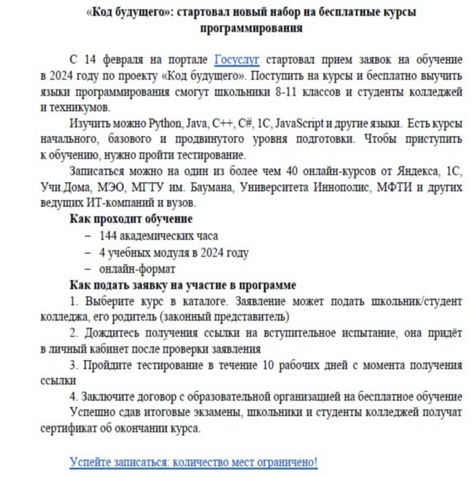 Запишитесь на бесплатные курсы «Код будущего!